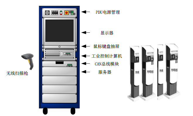 (2)設備采用機柜式設計方式,機柜內(nèi)部集成工控機及外設、顯示器、掃描槍、報警裝置、電源保護裝置高壓/絕緣檢測儀器及附屬配件。